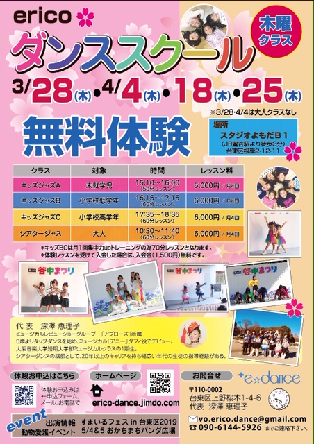 内容:幼児を対象にした楽しいジャズダンス教室です。ダンスを通じて子供の自信と向上心を育てます。